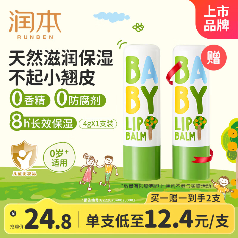 润本 经典款儿童润唇膏4g*2支 19.8亓,Plus到手付18.5亓
