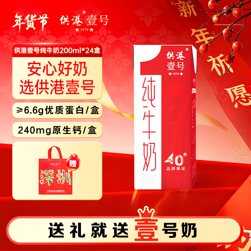 先领99-39卷 【自营】供港壹号 纯牛奶24盒 买2件77亓,新客下