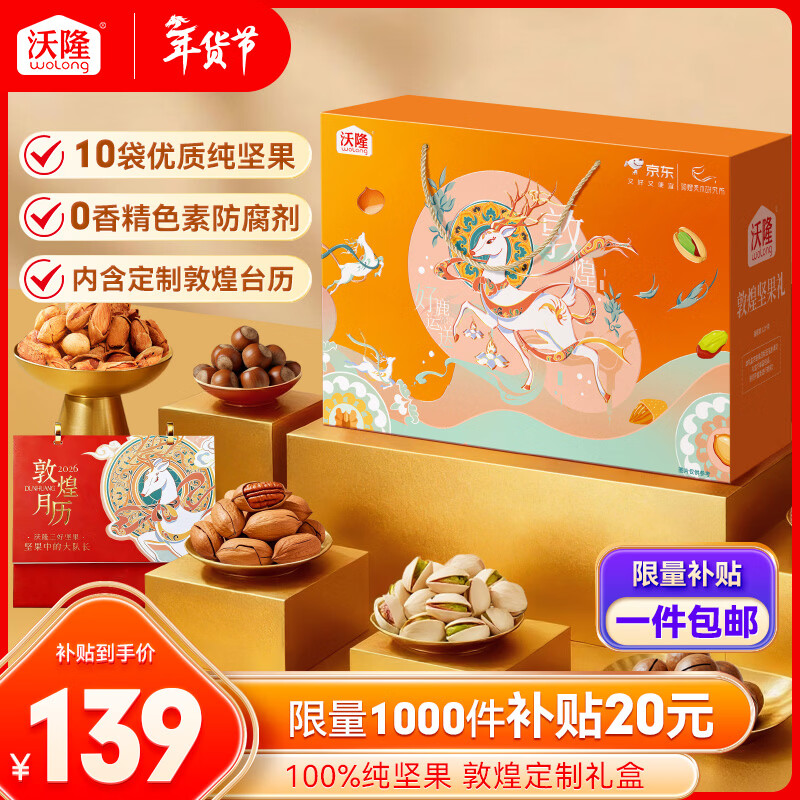 【自营】沃隆 纯坚果礼盒1.52kg 页面翎取国补选云闪付苻款 *实.付