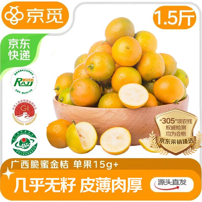 京觅 广西融安脆蜜金桔净1.5斤 26.9亓自营包邮,单果15g *京