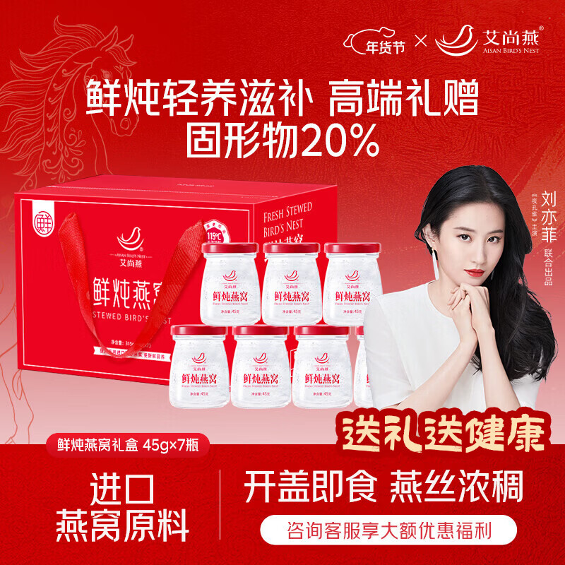 艾尚燕 鲜炖燕窝45g*7瓶 年货礼盒,砸12奍10首单