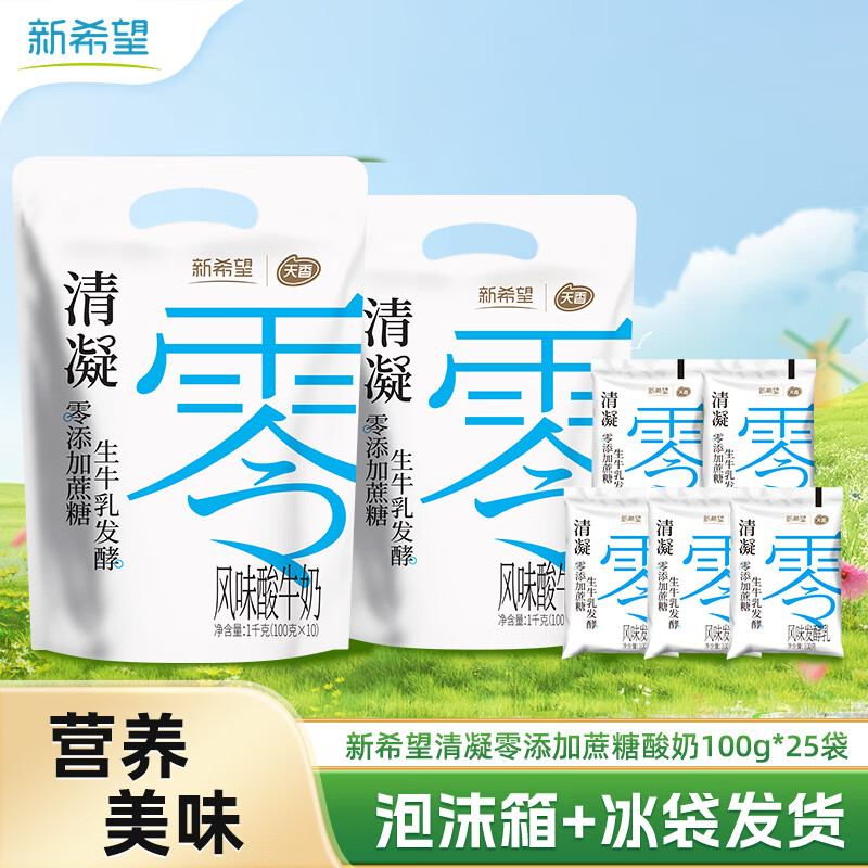 新希望 0糖酸奶100g*26袋 仅.需29.9亓,才折1.1亓/袋 *