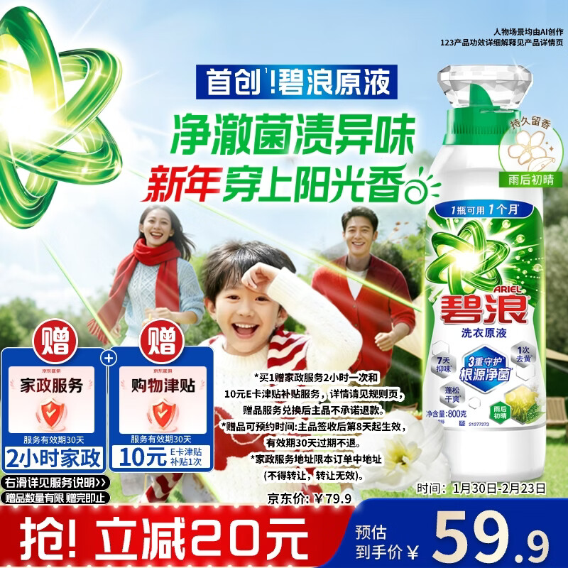 任选59.9亓 反10超市卡 到手49.9亓 赠家政2小时 碧浪除菌洗