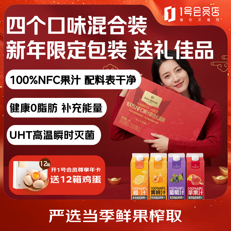 【自营】One’s Member 100%NFC果汁1L*4盒礼盒 59