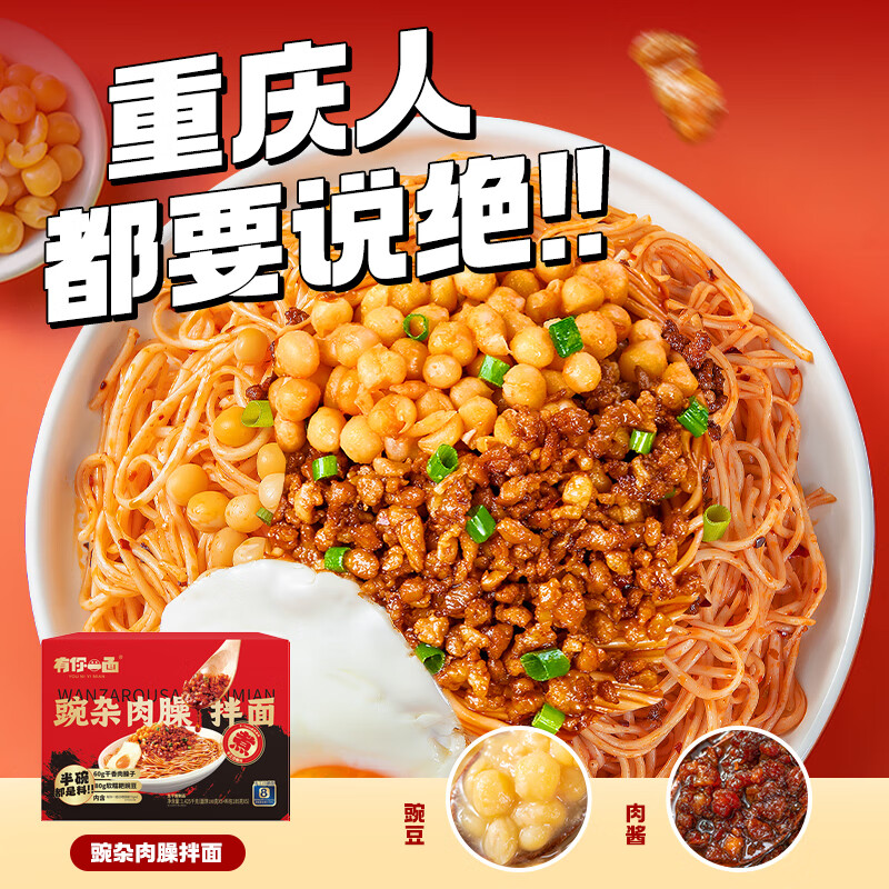 试用会场加购 有你一面豌杂肉臊拌面1.425kg箱装 加料加面,33