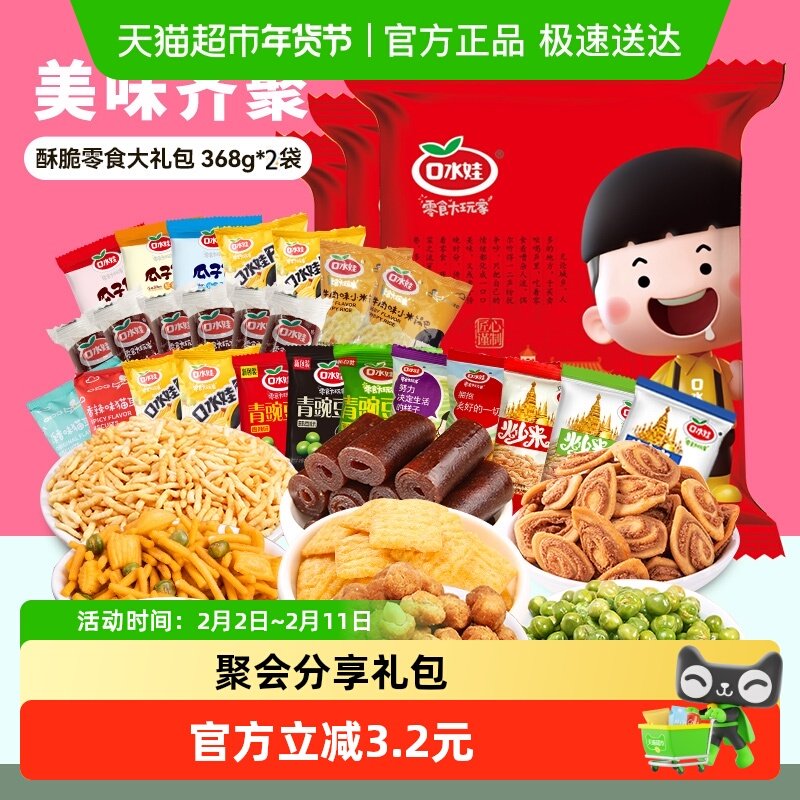 口水娃酥脆零食大礼包368g*2袋 猫超首页搜:坚果,部分有品类jin 过