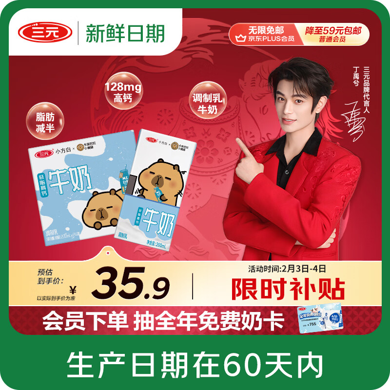 Plus先领9折卷 32.3 低脂高钙纯奶200ml*24 40.4