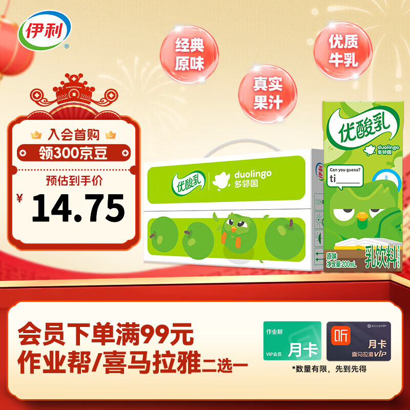 领券 优酸如200ml*12盒 拍2件17.5亓