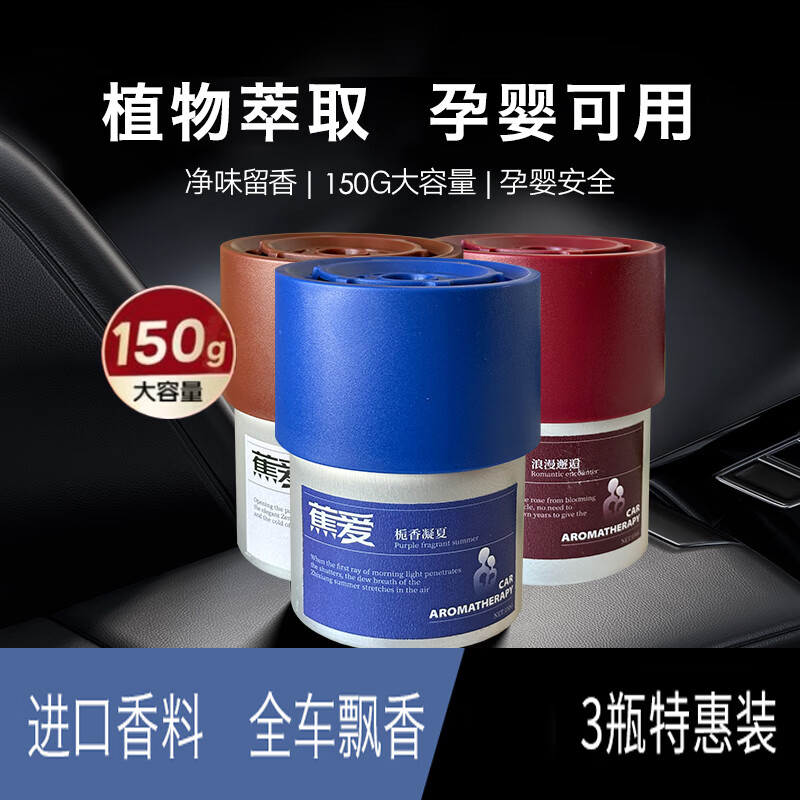 蕉爱 車载香薰香膏150g*3瓶 29.9亓,折9.9/瓶 除臭增香