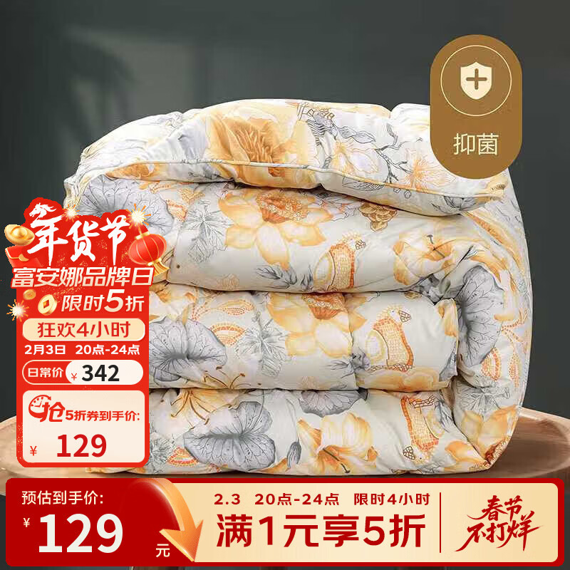 先抢5折补帖卷 富安娜 进口抗菌羊毛被冬被 129亓,大尺寸 刚.需安