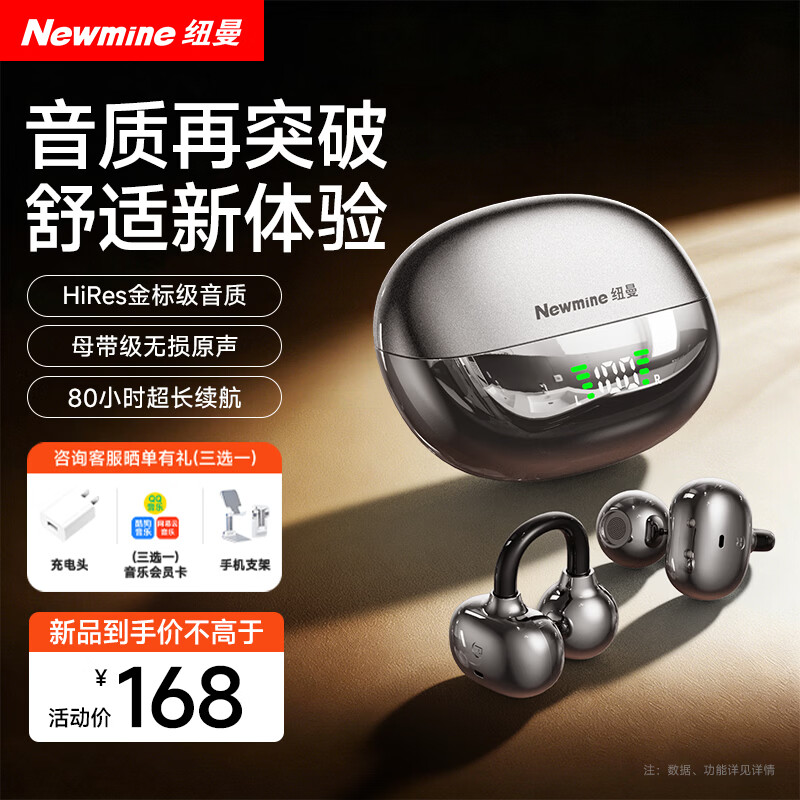 纽曼 耳夹式不入耳蓝牙耳机 109亓,超长续航 久戴无感