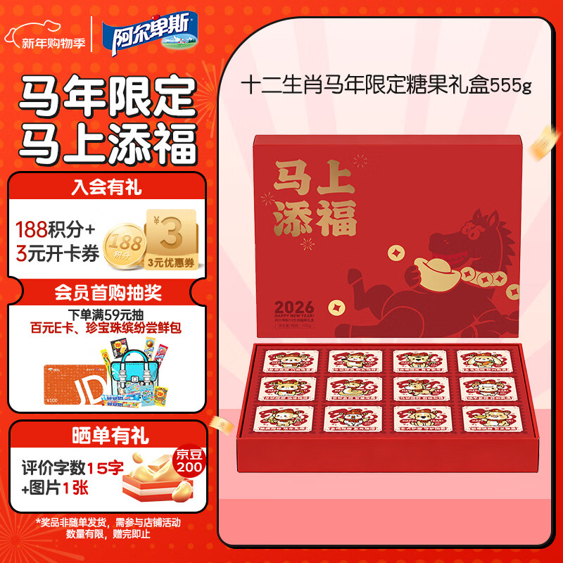 【自营】阿尔卑斯 马年糖果555g 买2件69.8亓,之前要79.8亓