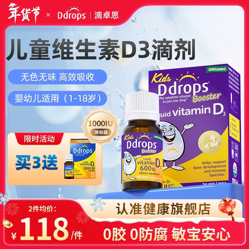 买2件168.2元 1-18岁D3滴剂