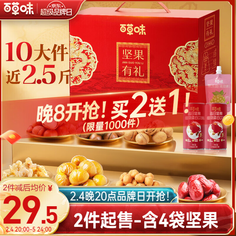 【自营】百草味 坚果礼盒1235g 买2件59.8亓,限.量赠同款1箱