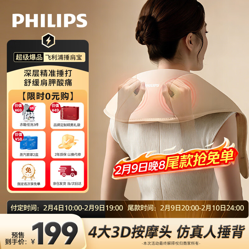 先领190-30卷 【自营】飞利浦 颈椎按摩仪 定金20亓,到点付尾款