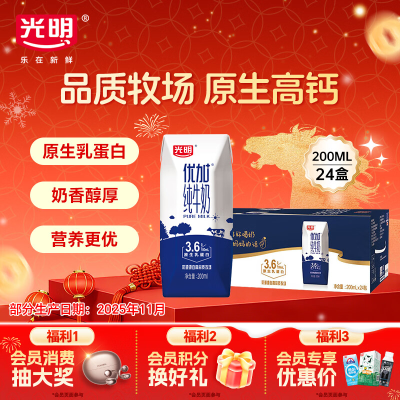 ——快光明优加豪車— 【自营】光明 优加纯牛奶24盒 买2件84亓,才折