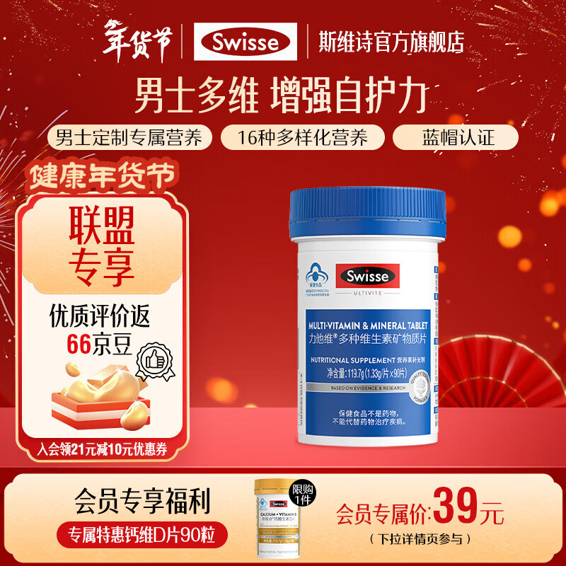 Swisse 男复合维生素片90片 86亓,每日一片 增强免疫力 *还