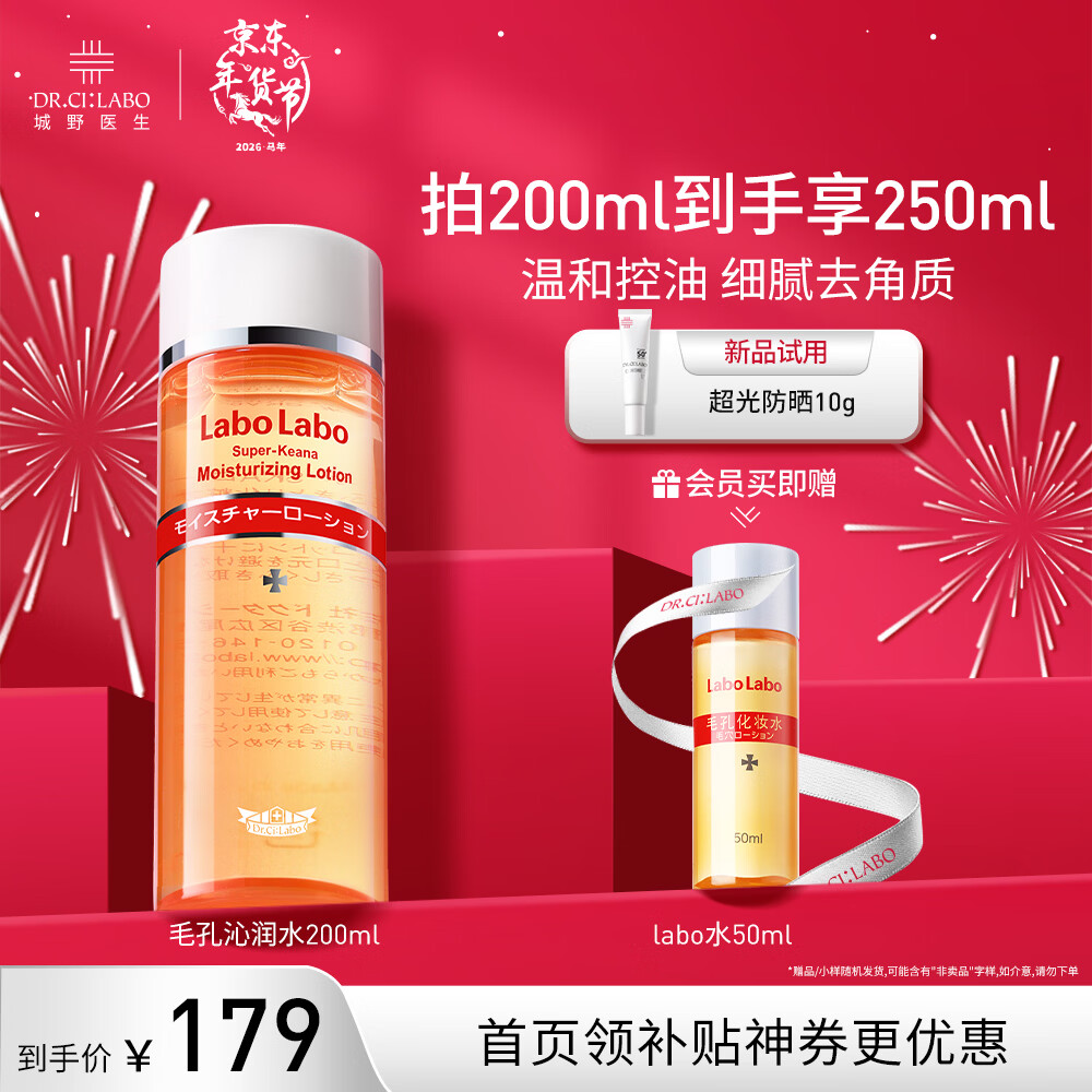 城野医生毛孔收敛水爽肤水200ml 赠品50ml