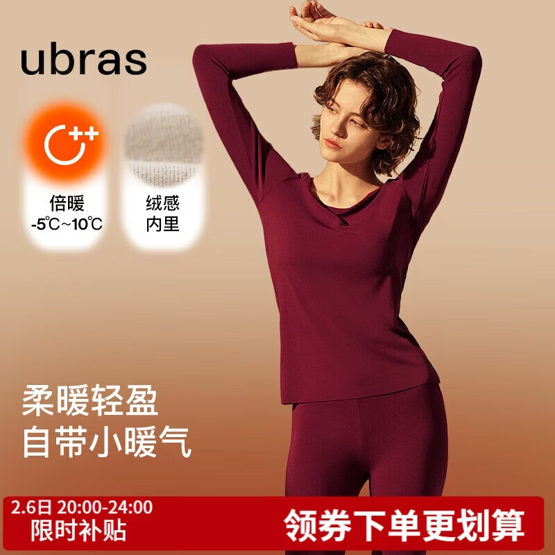 先领5折补帖卷 ubras 女钻石领肌底衣套装 93亓自营包邮, 绒感