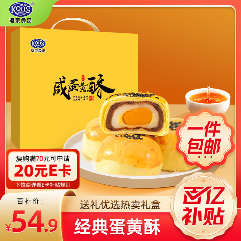 【自营】港荣 咸蛋黄酥1kg礼盒 买2件98.8亓,新客再减5亓 *pl