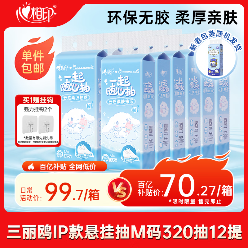心相印 挂抽4层320抽*12提 70.2亓自营包邮,新客减3亓 *赠2