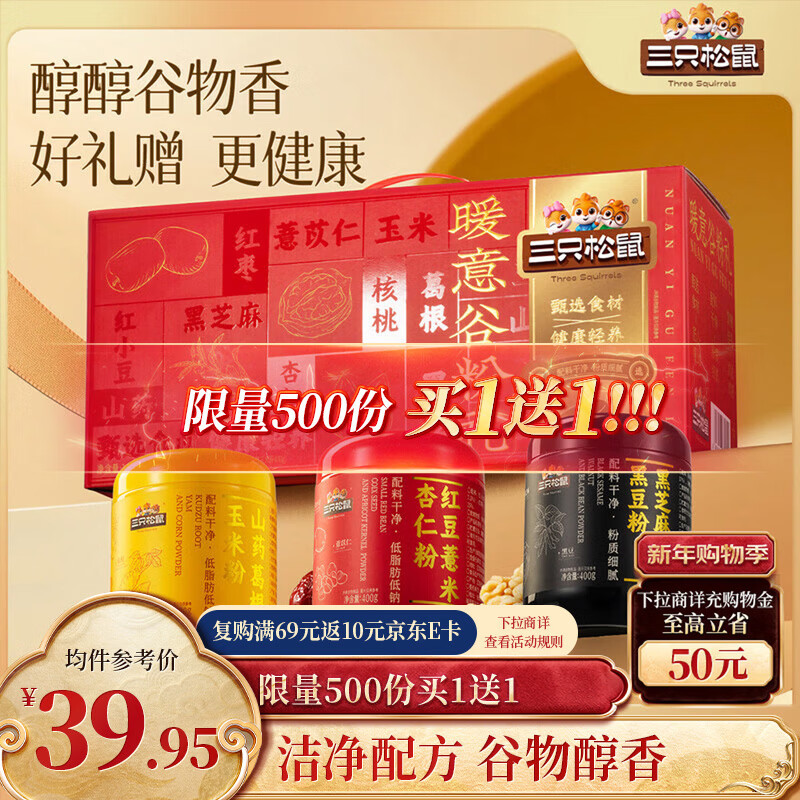 三只松鼠 膳食冲调礼盒1200g 79.9亓自营包邮,赠同款1件 *折3