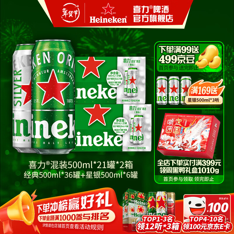 喜力 经典 星银500ml*42罐 230亓,再赠星银500ml*3罐