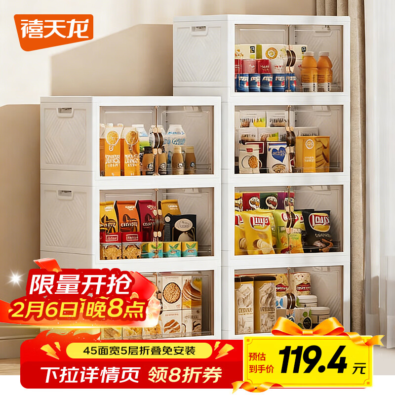 先领8折补帖卷 禧天龙 双开门折叠5层收纳柜 119.3亓,透明可视