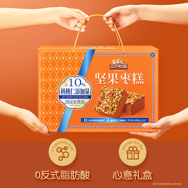 先领50-14卷 【自营】三只松鼠 坚果枣糕600g 买2件39.8亓