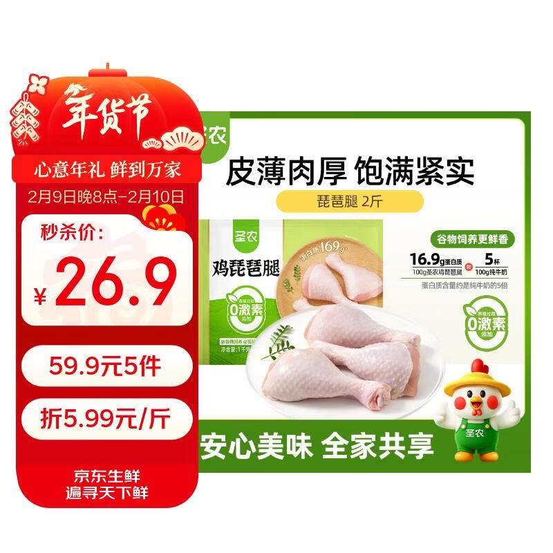 【自营】圣农 鸡腿/翅根/鸡胸2斤 任选5件59.9亓,才5.9亓/