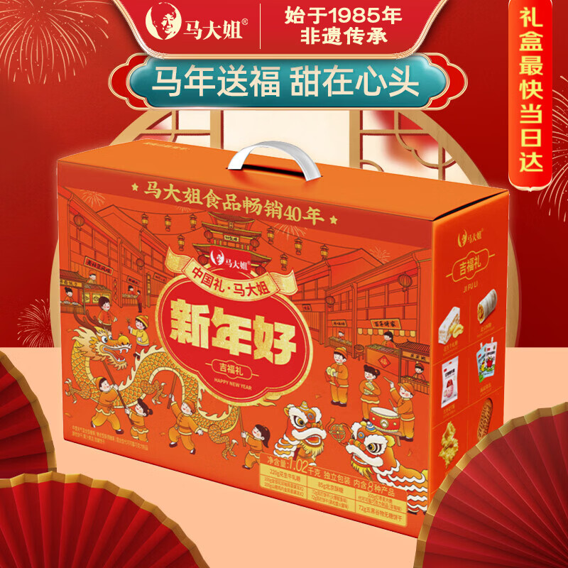 马大姐 新年糖果礼盒 吉福礼1.02kg 年货礼盒 拍2 单件14.9