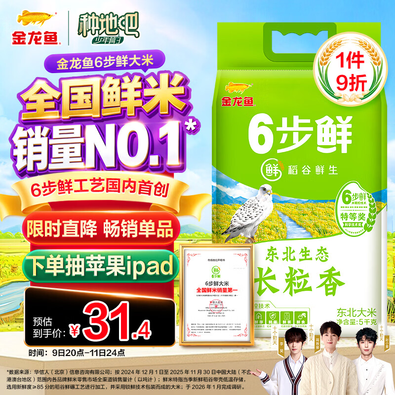 百亿补贴-超级加倍补 金龙鱼长粒香大米东北大米稻谷鲜生长粒香10斤