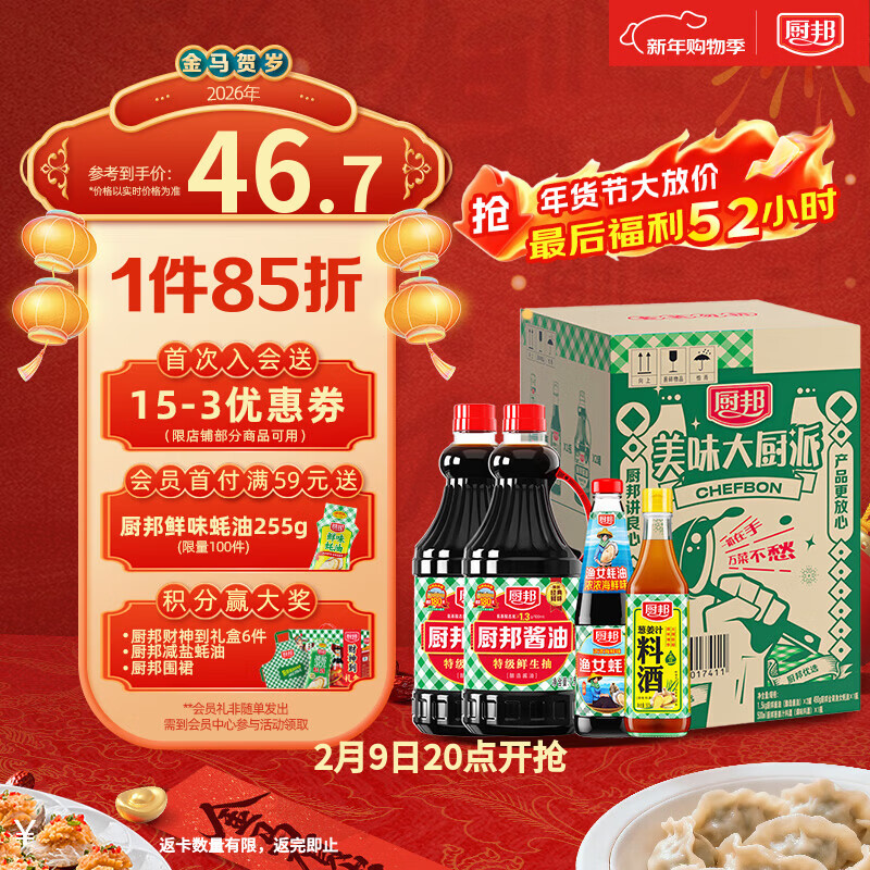 先领80-39卷 【自营】厨邦 调味4件套3.99kg 买2件54.3