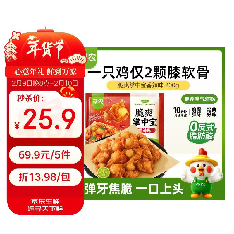 【自营】圣农 掌中宝/洋葱圈 任选5件69.9亓,年货挑一挑 *还