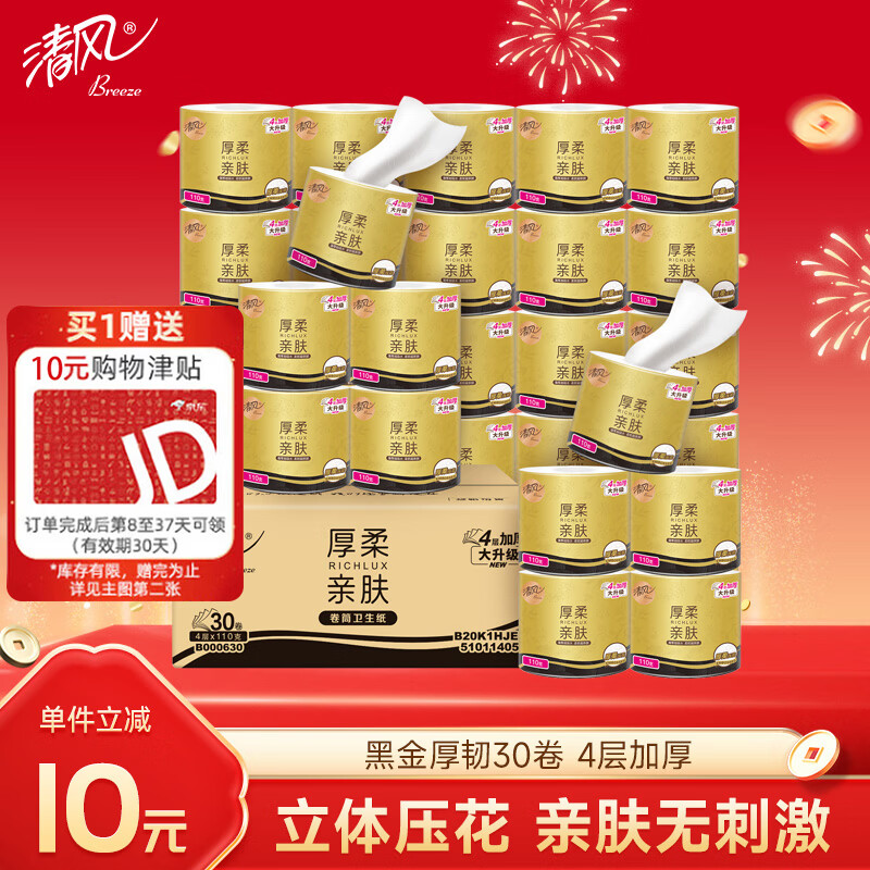 【自营】有芯卷纸110g*30卷 买2件87.8亓,Plus付81.8亓