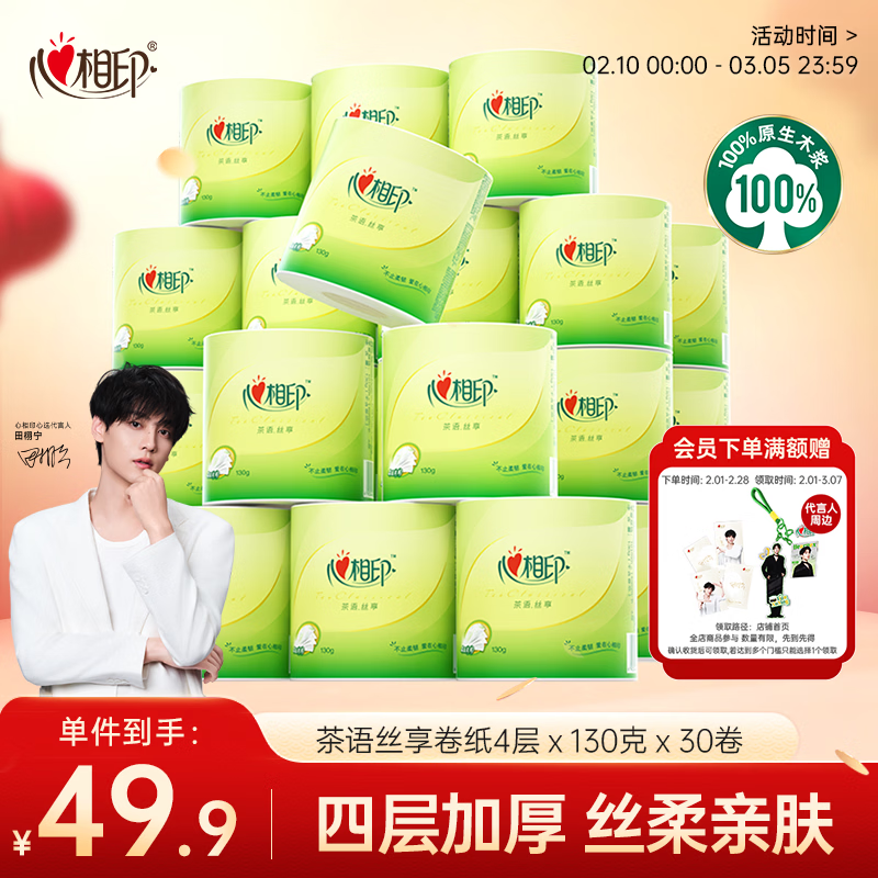 【自营】心相印 卷纸130g*30卷 买2件89.6亓,plus付84.