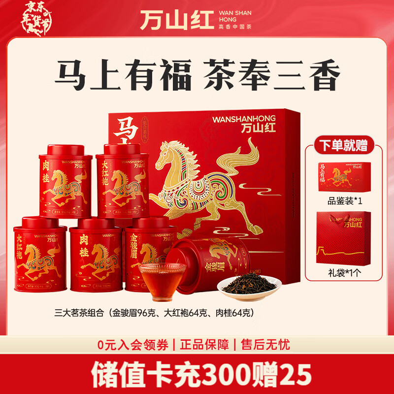 Plus领200-25补贴券 八马万山红 三大茗茶礼盒 224g 赠品