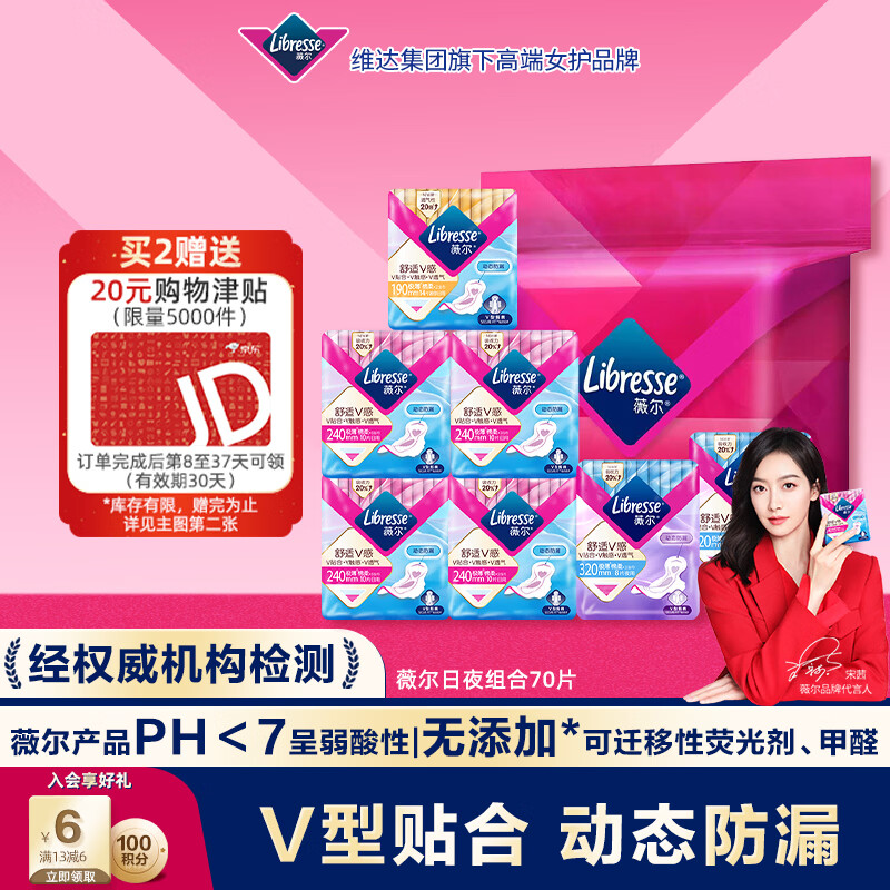 薇尔卫生巾日夜组合7包70片 拍2件69.9亓 赠20够物津贴 到手49