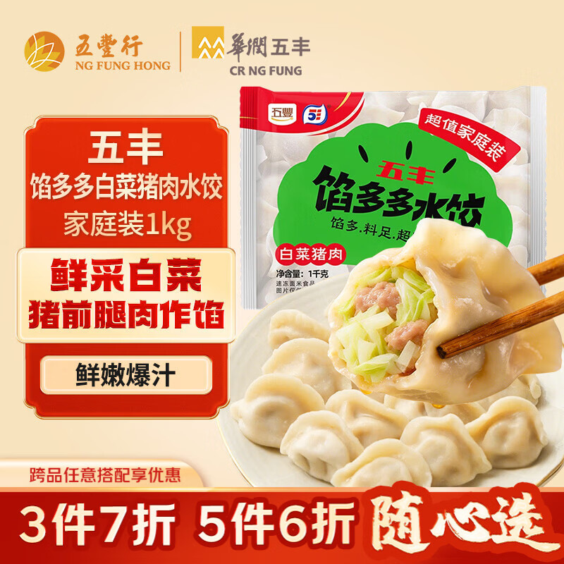 直b间搜索加购 舟山9.5折奍 五丰 馅多多白菜猪肉水饺1kg 5首