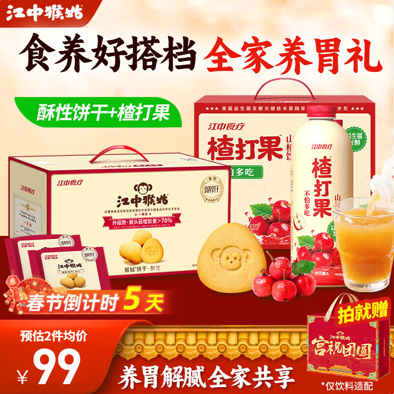 先领99-30补贴券 江中猴菇 猴头菇酥性饼干624g 山楂汁礼盒1L