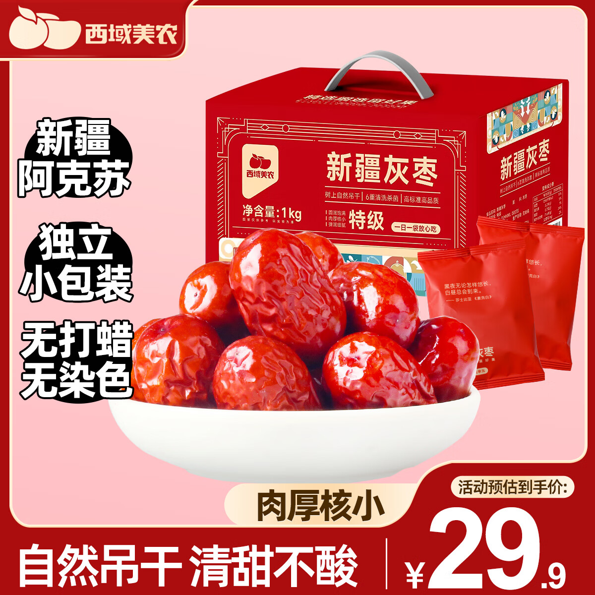 西域美农 特级新疆灰枣1000g 29.4亓,即食煮粥煲汤都行 *肉厚