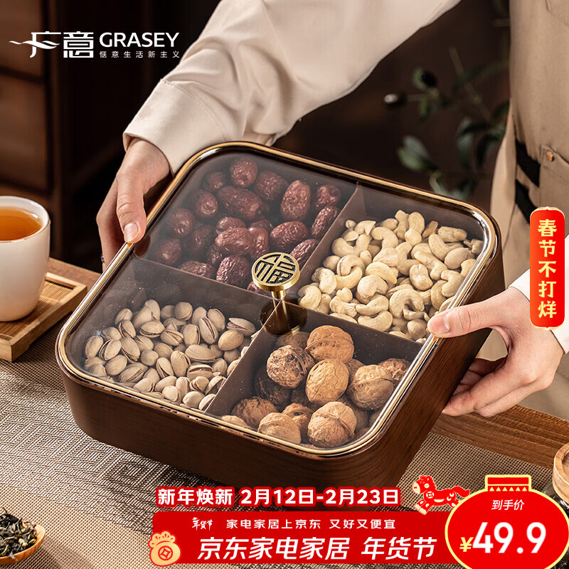 先领5折补贴券 广意 仿木金福糖果盒/果盘 24.9亓,食品级材质 放