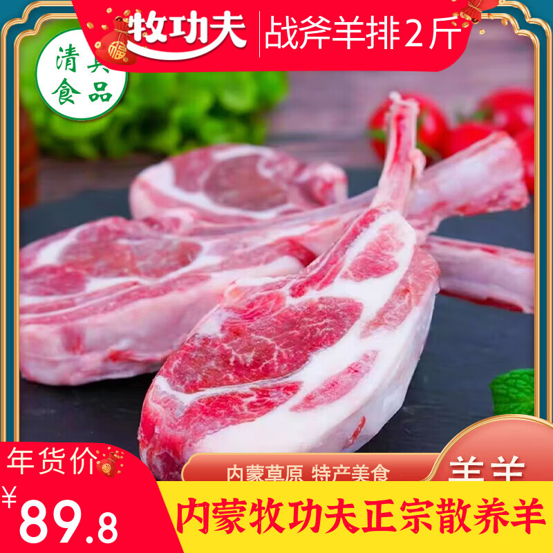 先领89-10券 牧功夫 羔羊原切战斧羊排12支 79.8亓自营包邮,