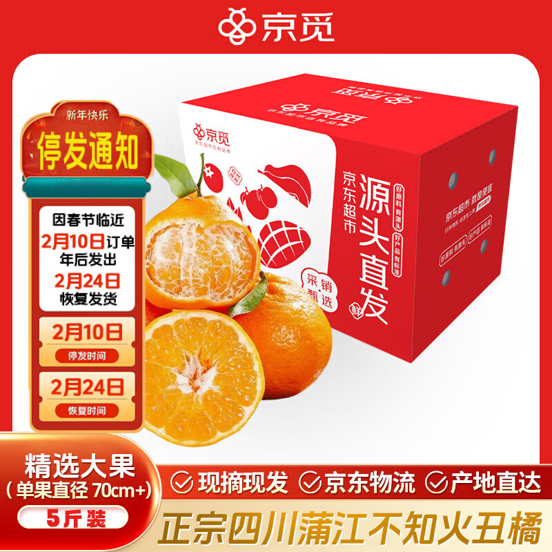 京觅 四川蒲江不知火丑橘5斤 19.9亓自营包邮,70mm *源头直发