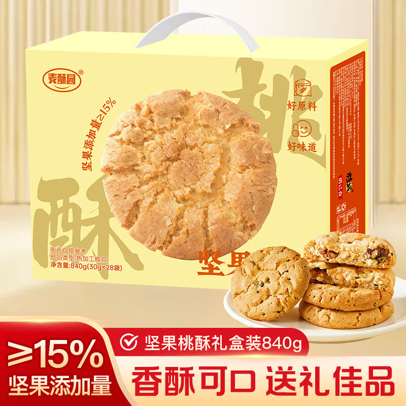 黑五200-20奍 麦酥园 坚果桃酥过新年货礼盒840g 试用价,凑后8
