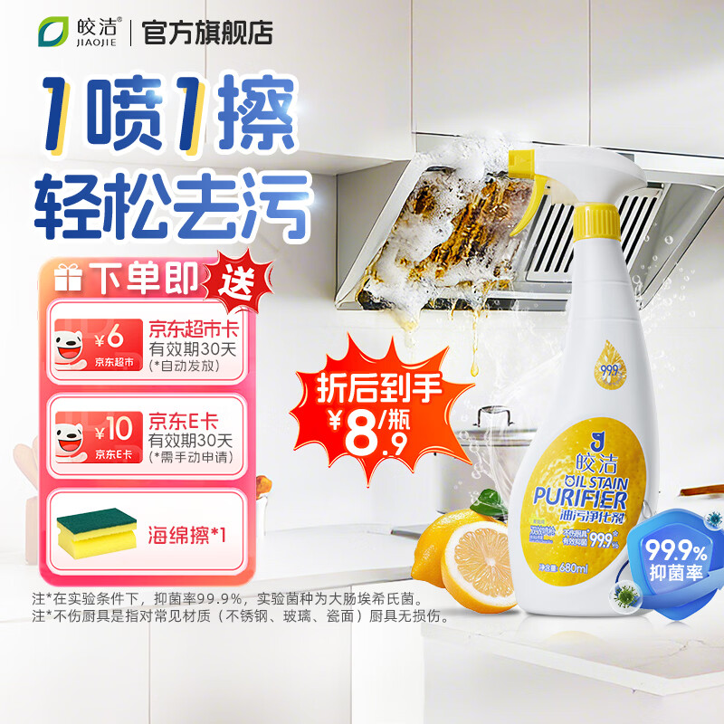 【自营】皎洁 重油污清洗剂680ml 24.9亓 运费,Plus无限包邮