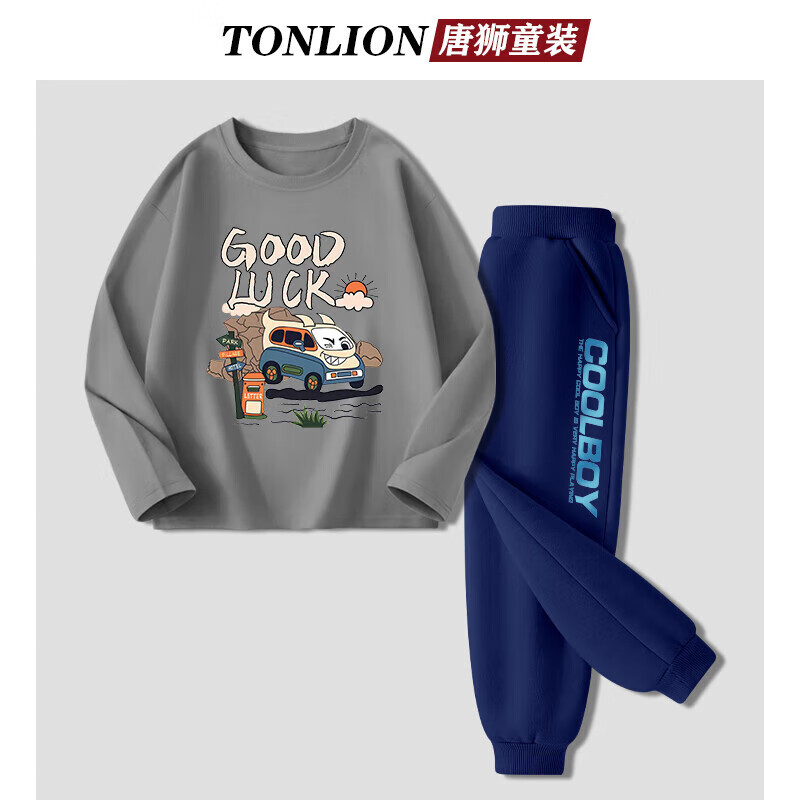 唐狮 儿童长袖T恤卫裤套装 49.9亓,多款可选 亲肤透气