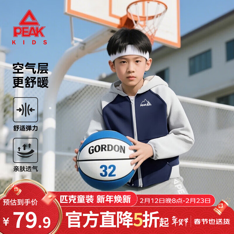匹克 儿童空气层连帽开衫外套 69.9亓,多色可选 舒适透气