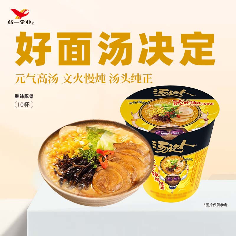 先领10-10券 统一 汤达人桶装方便面10桶 36.9亓,折3.6/