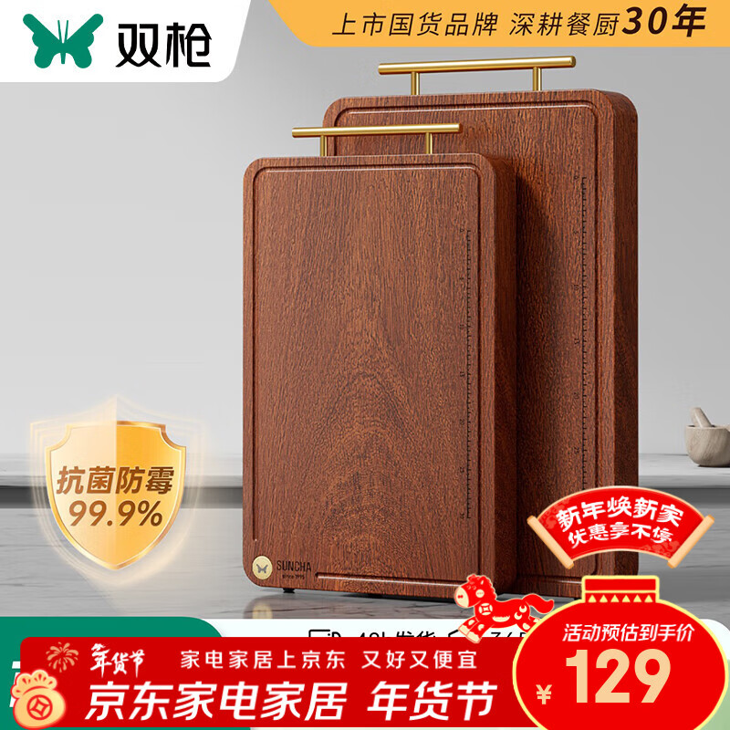 双枪 乌檀木菜板40*28*2.5cm 89亓,抗菌防霉 初四发货